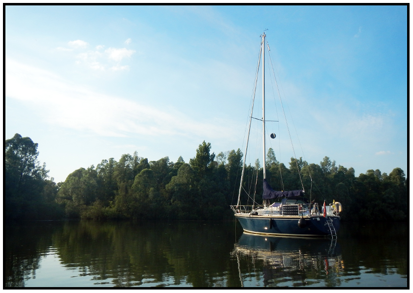 It was significantly cooler today. We decided to go on a little adventure with our inflatable dinghy, so we set out to explore the smaller creeks that are branching away from the main channel. We paddled through the high reeds, under overhanging mossy trees and over shallows where we could see the fish swim amongst the water plants. The perspective from the small dinghy is so different than from our boat. You’re much closer to the surface, enabling you to see all the little details like the dragonflies hovering above the water, the flowers on the embankment and the waving water plants underneath the boat. It feels like you’re really immersed in nature. Slowly we drifted on the current through the beautiful landscape. Nothing to be heard but the sound of singing birds. It truly was a memorable journey.