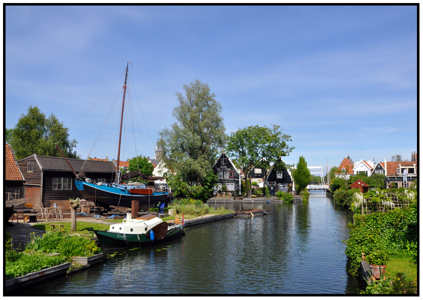 After Captain Fluffy had his fun we did a bit of exploring ourselves and set out to the historic centre of Edam. Edam is a beautiful little city. If it wasn’t for the cars parked here and there it could have been an open air museum. Funny, we’ve been to several historical towns and cities so far, but somehow this one looked more real. Most buildings date from the 17th century and there’s even an old shipyard that is still in use in the middle of the town. We like it here. It’s a friendly town, people are smiling and relaxed. And even though there are quite a few tourists about it doesn’t feel like a touristic place. We enjoyed the scenery and the people passing by whilst enjoying an ice cream in the sunshine. Life is good.