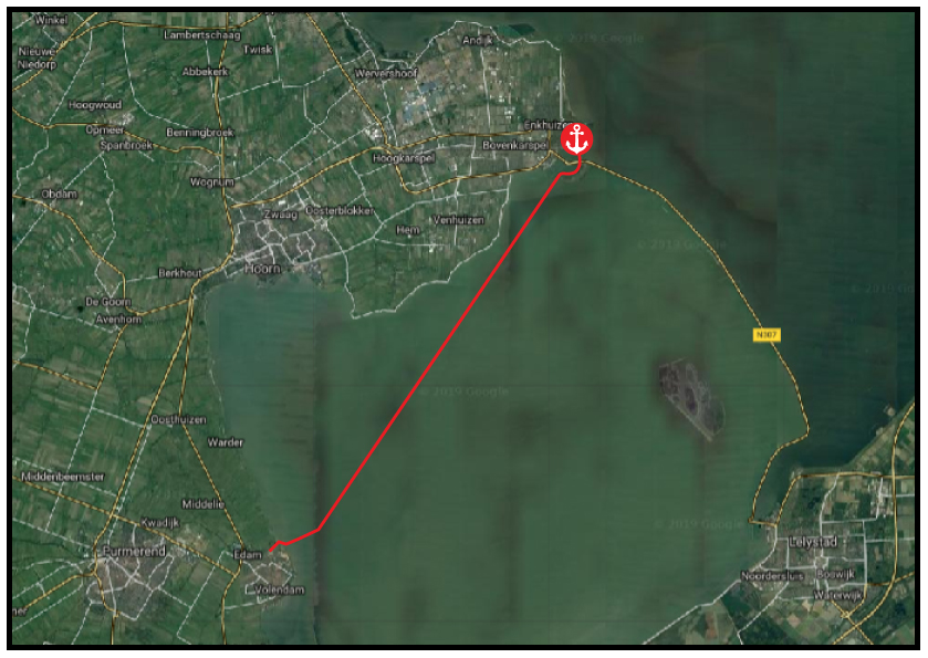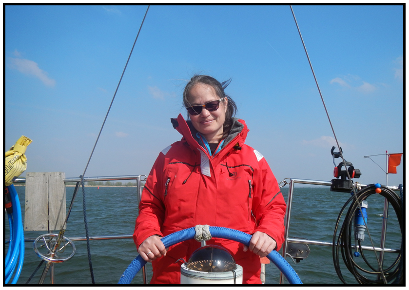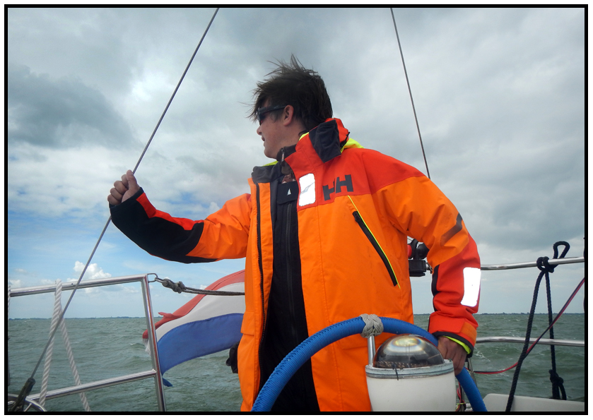 The weather forecast predicted 3 to 4 Beaufort for today and blowing straight towards Enkhuizen, so we decided to leave. We left the marina and hoisted our genoa first to see what the wind would do. It started out fine, we had a steady breeze and made good speed. But then the wind started to increase rapidly and soon it was blowing a steady 4 to 5 Beaufort. Our genoa is really big, and since it is probably one of the original sails it would be 40 years old, just as old as our boat is. After all these years it has completely lost its shape. It would only blow up like a balloon, trapping the air flow and tilting the boat over forwards which was not really pleasant. And since we’re not very experienced yet, we don’t know how to handle the ever increasing wind with the shapeless sail. We tried furling in the genoa a bit to minimize the amount sail, but that didn’t really change much. After the wind had increased even more with gusts up to 36 knots we had enough and decided to furl in the genoa and continue by engine. So much for 3 to 4 Beaufort.