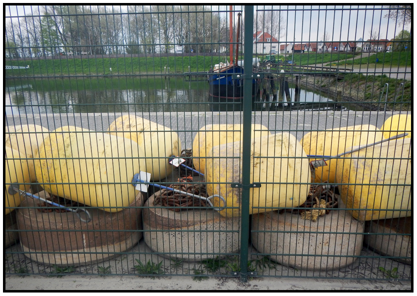 We had used mooring buoys before, but never an anchor. We always thought that they were preferable above an anchor, because they looked so sturdy and seemed safe to use. But on the internet you can find a fair bit of warnings against those mooring buoys, that in fact they aren’t safe at all, especially with high winds. And you never know for sure when they were last checked or hauled out for maintenance, so they might be in a dodgy state. Here in the Netherlands they take the mooring buoys out of the water in winter for maintenance, in that sense their durability is checked regularly. The buoys were still on the hard in the depot when we were in Middelharnis because it was still early in the season. And actually it was rather unsettling to see how small the concrete blocks were to which the buoys were attached. We now can imagine that they wouldn’t be able to hold the weight of a sailboat in a storm.
