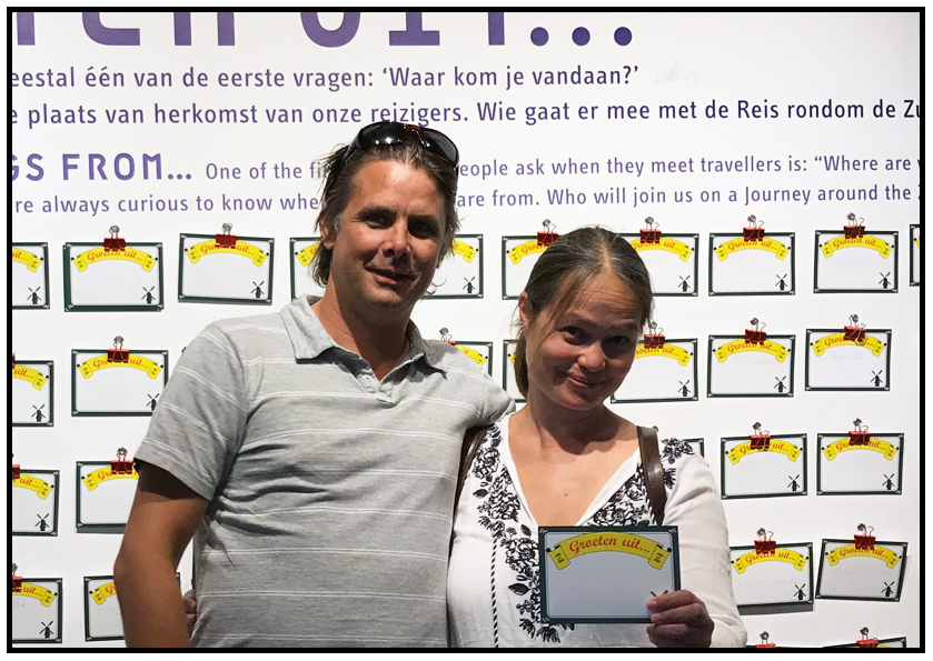 Carmen debarked to get the fish at the museum, while Jeroen paddled back to one of the docking piers. Triumphantly with a bag of smoked mackerel we returned to our boat. A successful expedition!